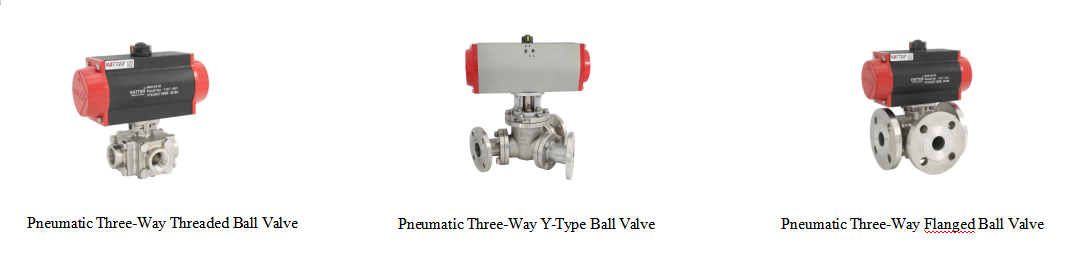 Pneumatiska trevägskulventiler är flerriktade flödesventiler kategoriserade i konfigurationer av L-typ, T-typ och Y-typ. Ventiler av L-typ och T-typ tillåter tre ortogonala rörledningar att kopplas samman samtidigt som den tredje kanalen isoleras, vilket möjliggör flödesdelning och sammanfogningsfunktioner. Dessa kulventiler kan endast ansluta två ortogonala rörledningar samtidigt och kan inte upprätthålla sammankoppling med den tredje rörledningen. Kulventiler av Y-typ är speciellt utformade för pulvermedia, vilket säkerställer ett jämnt pulverflöde och förhindrar materialansamling.