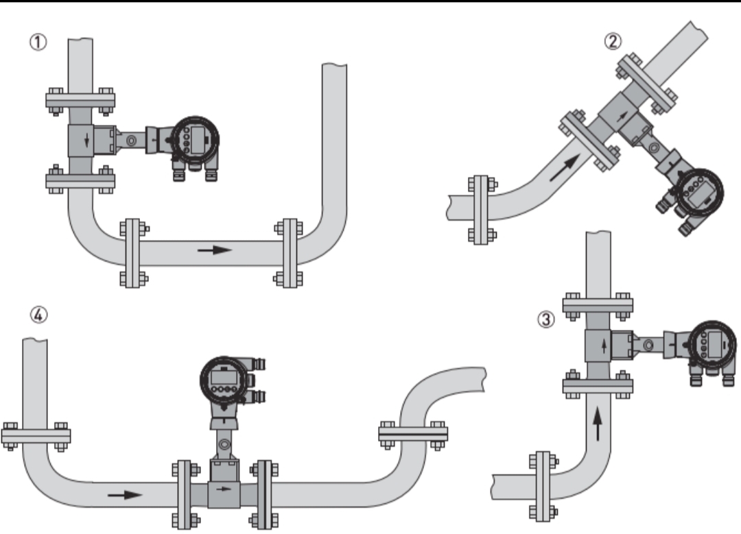 4. Vid mätning av media med höga temperaturer levererar tillverkare vanligtvis virvelflödesmätare av delad typ. För integrerade vortexflödesmätare bör sändarens orientering bestämmas baserat på mediets temperatur. Till exempel, när man mäter ånga vid hög temperatur, bör sändaren vara orienterad i sidled eller nedåt (vissa tillverkare rekommenderar inte installation nedåt, eftersom vätska kan tränga in i sändarhuvudet).