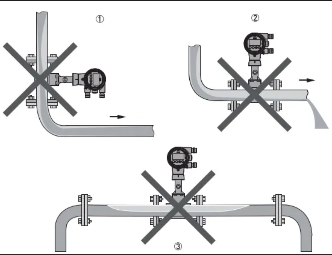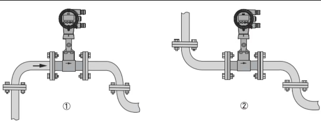 2. Flödesmätaren måste installeras på en plats som säkerställer att röret är helt fyllt för att uppnå normal mätning.