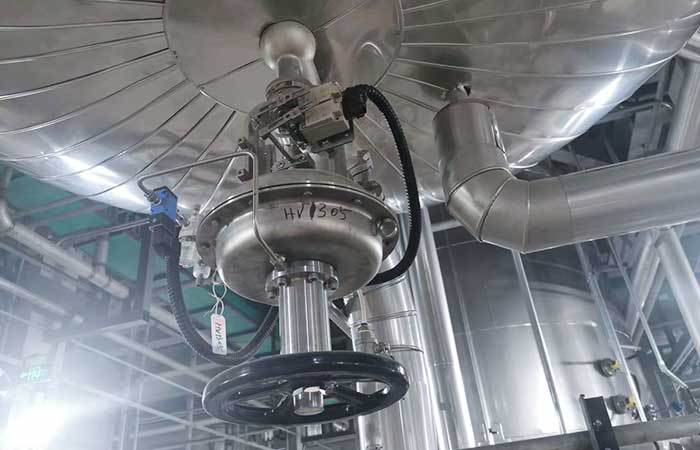 Den pneumatiska bottenventilen används för att tömma material från reaktionskärl i rena industrier som läkemedel, bioteknik, finkemikalier och livsmedel. Ventilen har fördelar som inga döda zoner, inga rester, inga läckor och utmärkt tätningsprestanda. När de används med en omrörare kan bottenmaterialen blandas helt med vatten under omrörning, vilket säkerställer en jämn fördelning. Ventilen antar en 35-graders installationsvinkel, vilket ger en självrengörande funktion för materialutsläpp och gör underhållet av utrustningen mer bekvämt. Ventilens insida är spegelpolerad med en grovhet på 0,2-0,45 μm, vilket gör den renare att använda.